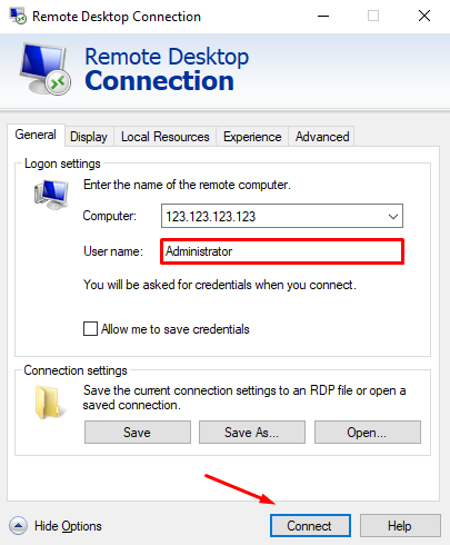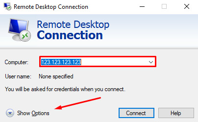 - No campo Computador, insira o Endereço IP do VPS e clique em Mostrar Mais